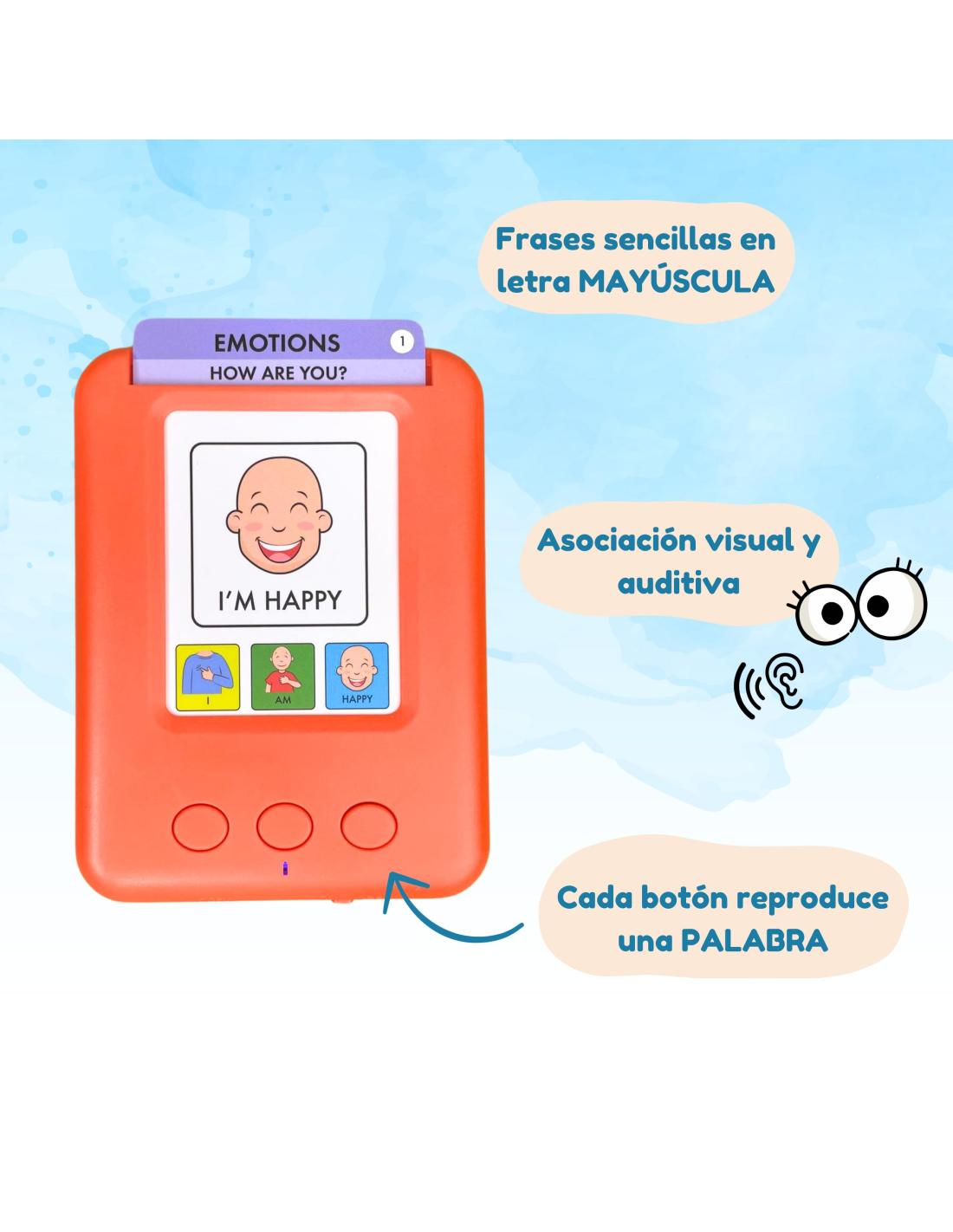 Grazie ai 3 pulsanti sonori, il lettore riproduce ogni parola della frase in modo chiaro e stimolante. Il tuo bimbo può ascoltarle, ripeterle e impararle da solo, rafforzando l’autonomia e l’autostima. Uno dei migliori giochi per sviluppare il linguaggio in modo naturale e divertente.